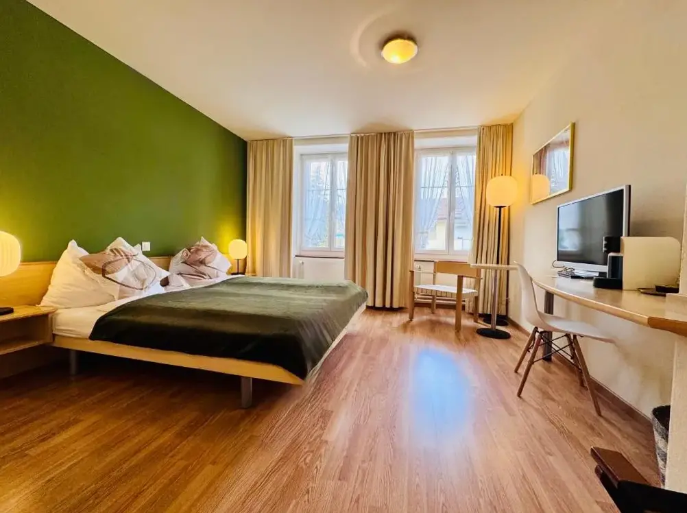 Super Willkommen, kam spät an und trotz der unmittelbaren Schließzeit des Restaurants wurden wir vom Chef zu einem Willkommensgetränk auf der Restaurantterrasse eingeladen, eine großzügige und sehr schöne Geste. Großzügig mit Wasser für das Schlafzimmer. Diese Art von Geste ist heutzutage so selten, dass der Begrüßung besser war als in 5 Sternen. Mittagessen in der Dorfbäckerei / Teelaum mit einem Reduktionsgutschein.
